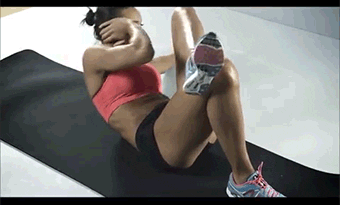 Start out on your back. With hands behind your head, alternate: Bring your left elbow to your right knee, your left right elbow to your left knee.